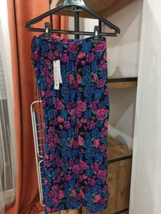 Falda larga con un vibrante estampado floral. - Diseño con flores en tonos azules, rosas y morados. - Corte fluido y favorecedor. - Stradivarius - Nueva sin estrenar. Precio pagado 22,99€.