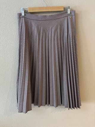Falda con estampado de cuadros en tonos beige y negro. Presenta un diseño plisado que le da movimiento. - Diseño plisado. - Estampado de cuadros.
