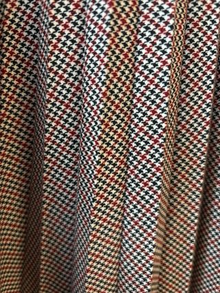 Falda plisada de Pedro del Hierro con un estampado de cuadros pequeños en tonos negros y rojos. La falda tiene una caída fluida y elegante. - Diseño plisado. - Estampado de cuadros pequeños.