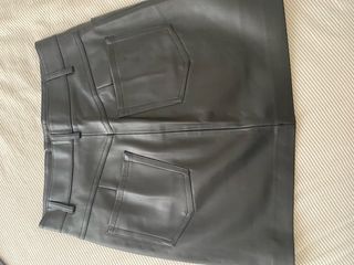 Falda pantalon mini en tejido de efecto piel de tiro medio en color granate. Mide de cintura 36cm y de largo 32,5cm. Esta como nueva usada en una sola ocasion.