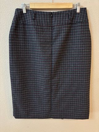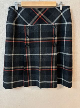 Falda de vestir de Roberto Verino con un elegante estampado de cuadros gris marengo y rojo. 39% de lana. - Forrada, no tiene bolsillos. - Pinzas delanteras para un mejor ajuste. - Largo hasta la rodilla.