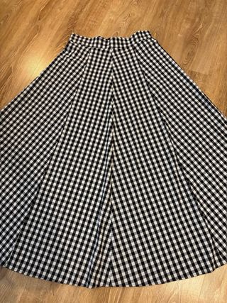 Falda larga con un estampado clásico de cuadros. - Diseño maxi, bolsillos laterales. No tiene forro. Mucho vuelo. - Estampado de cuadros blanco y negro.