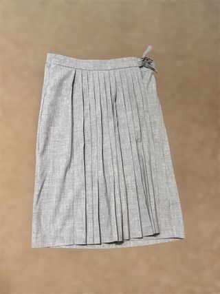 Elegante falda larga con un diseño plisado. Presenta un detalle en la cintura. Talla L. - Diseño plisado. - Detalle de lazo en la cintura.