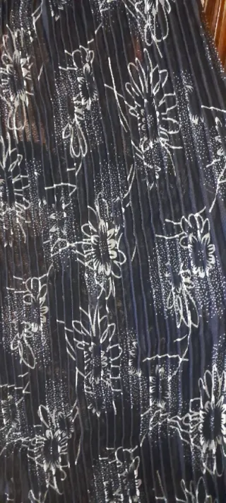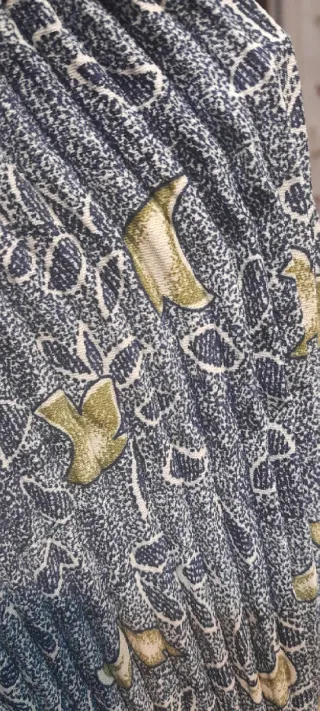 Falda plisada con un bonito estampado. - Diseño plisado vertical. - Estampado floral plateado sobre fondo azul.
