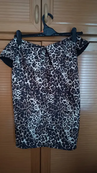 Falda larga fluida de tul semitransparente en color negro con forro interior de minifalda en estampado de leopardo. Cintura elastica. Mide de cintura 31cm(sin estirar) y de largo 119cm. El largo de forro 41cm. Esta nueva sin haber sido estrenada nunca.