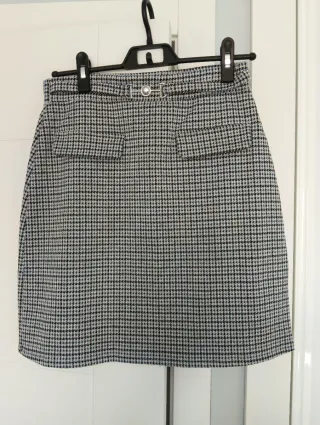 Minifalda con estampado de pata de gallo y detalle de hebilla en la cintura, de la talla 38, del Primark. - Diseño de corte recto. - Dos bolsillos delanteros. - Tejido con textura.
