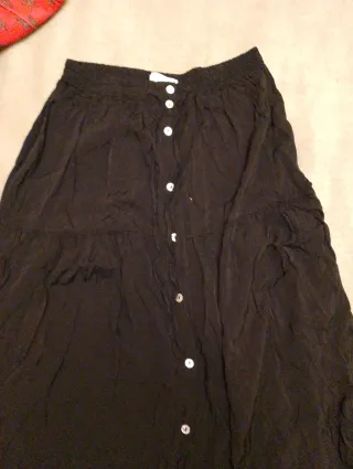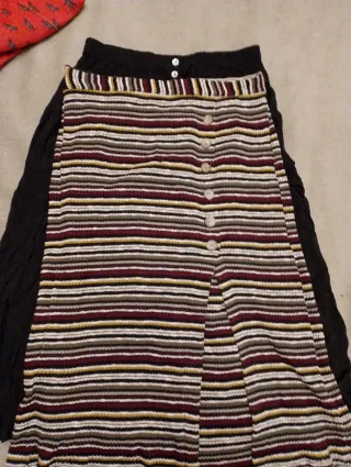 Lote de dos faldas. - Una falda larga de rayas multicolor con botones. - Otra falda negra Precio por las dos,ya ajustado