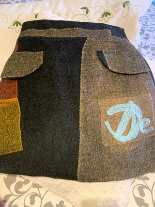 Falda de la marca Desigual con un diseño patchwork único. - cremallera en la parta de atrás . - Paneles de diferentes texturas y colores. - Bolsillos delanteros, de adorno Medidas: 80 cm de cintura 48,5 cm largo