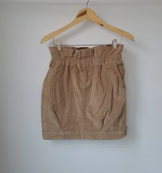 Falda de pana con cintura alta con elástico y bolsillos laterales. Marca Stradivarius talla S. #combinaloconmascositasdemiperfil #prendasdediferentestallasenmiperfil