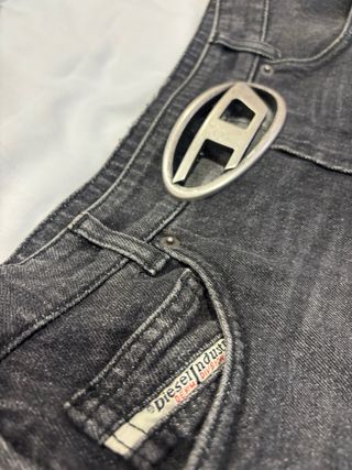 Falda vaquera de la marca Diesel, en color negro/gris y talla XS. Solo ha sido usada tres veces. - Diseño moderno. - Detalle de logo metálico. - Tejido denim.