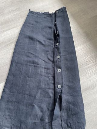 Falda larga de Massimo Dutti en color azul marino. - Cierre de botones. - Detalle deshilachado en el bajo. - Tejido de lino.