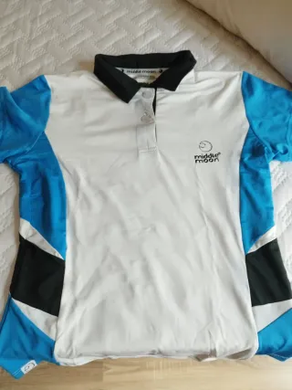Camiseta y falda pantalón de pádel con un diseño moderno y deportivo. Ideal para jugar con comodidad. - Mangas de color azul. - Cuerpo principal en blanco. - Detalles en negro y azul en los laterales. - Cuello tipo polo con botones.