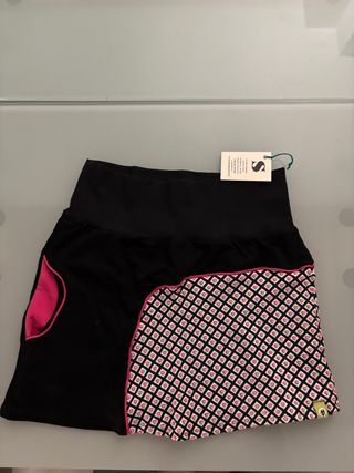 Falda pantalón deportiva para pádel. Diseñada para ofrecer comodidad y libertad de movimiento en la pista. - Tejido ligero y transpirable. - Doble capa con pantalón interior. - Detalle de costuras en contraste.