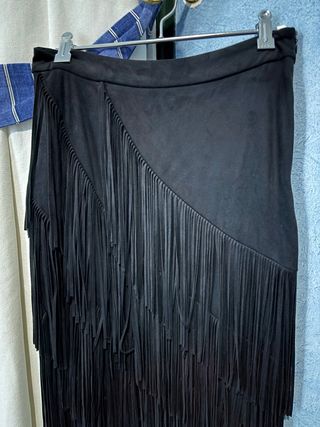 Falda negra con flecos negra , imitación ante