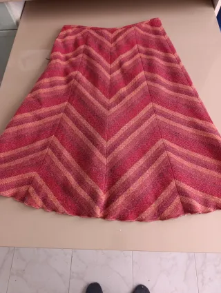 Falda midi con un diseño de rayas en zigzag es de Carmen Moreno, aunque la etiqueta se perdió, la calidad de la lana, lo atestigua - Tejido con textura. - Corte acampanado. - Largo midi.