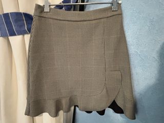 Falda con estampado de cuadros, ideal para la temporada de invierno. Presenta un diseño con volantes y fruncidos. - Estampado de cuadros. - Detalle de volantes en el bajo. - Diseño fruncido lateral.