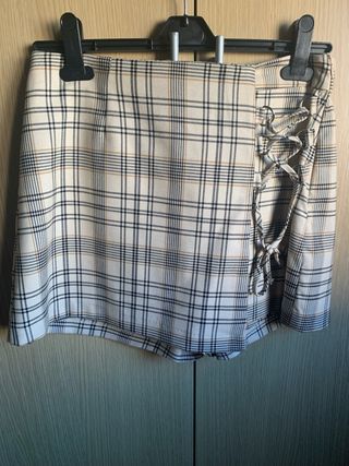 Falda pantalón con un diseño de cuadros moderno y detalle de lazada lateral. - Estampado de cuadros. - Lazada ajustable en el lateral.
