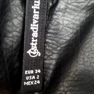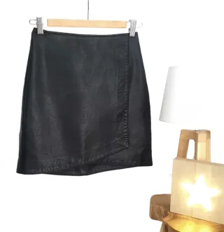 Falda cruzada negra, talla 34 de Stradivarius. Cintura 34-35 cm., largo 42'5. No conserva etiqueta de composición, pero es piel. En buen estado.