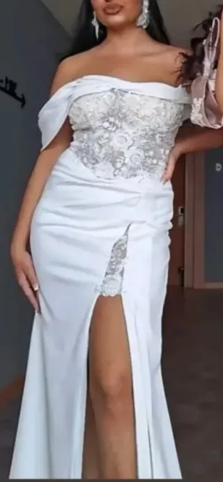 Vestido de fiesta blanco y plateado