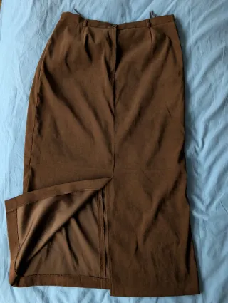Faldas de vestir, con un diseño elegante y moderno. - Tejido con textura. - Cintura con detalle de botón dorado. - Corte recto. No me cabe, no os la puedo enseñar pero son buenas. El acabado se nota que es de buena marca. Cada jna 10€