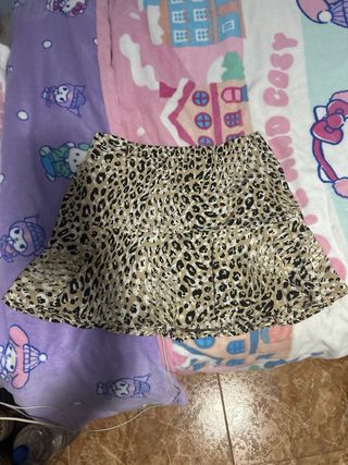 Falda corta con un divertido estampado de lunares. - Diseño con vuelo. - Cintura con trabillas. - Tejido satinado. - Falda de color azul - Pantalón corto rosa - Las dos prendas 2€