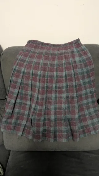Falda de invierno con estampado escocés. - Diseño plisado. - Tejido cálido.