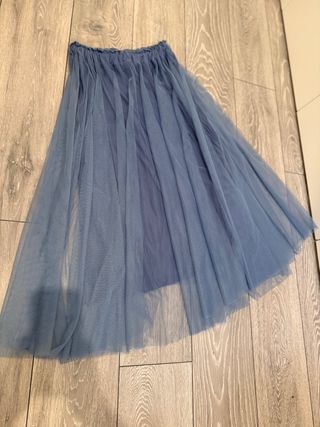 Falda larga de tul con cintura elástica. - Diseño vaporoso y ligero. - Capas de tul para un efecto voluminoso. - Color azul degradado.