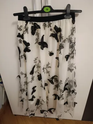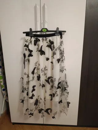 Falda midi de tul con un bonito estampado de mariposas y detalles florales. - Diseño de encaje con mariposas. - Tejido ligero y vaporoso. - cintura elástica..da talla