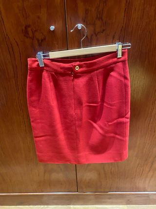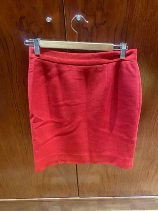 Falda corta de tejido tweed en color rojo. Presenta un diseño moderno con una abertura en el bajo. - Tejido tweed - Abertura lateral - talla L, pero es mas una M