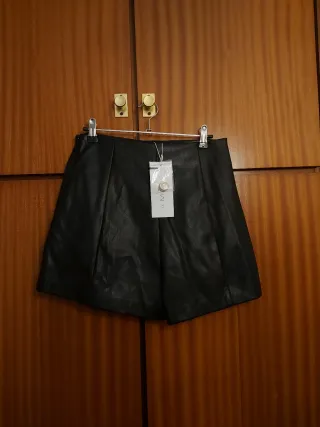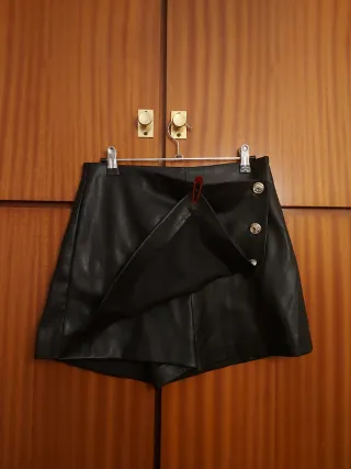 Falda pantalón de efecto cuero. - Cierre con cremallera lateral - Botones dorados. - Diseño cruzado.