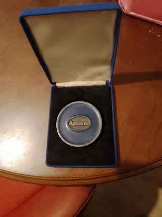 Medalla conmemorativa de Astano. - Diseño circular. - Acabado en tonos azules y plateados.