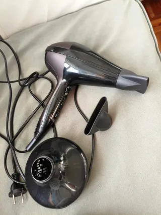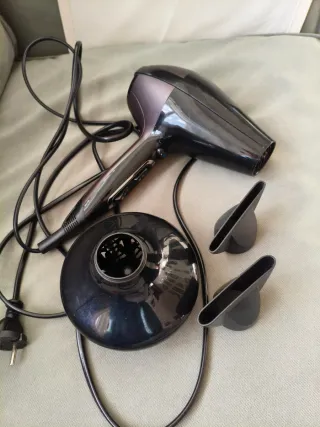 Secador de pelo. Viene con tres cabezales: difusor y dos cabezales estrechos. Es ligero. Lo vendo porque me regalaron otro por Navidades. La información que incluyo en la foto la saqué de amazon, que fue donde lo compré