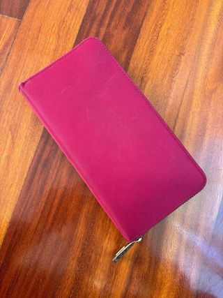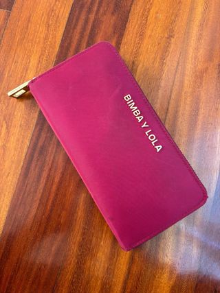 Billetera/ cartera de la marca BIMBA Y LOLA. - Color burdeos. - Detalle metálico dorado en el logo y en el tirador de la cremallera.
