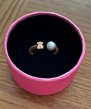 Anillo Tous oso con perla, diseño abierto. Como nuevo. Muy poco uso.