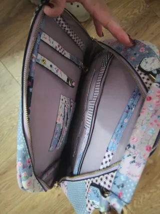 Mochila con un diseño patchwork de flores y cuadros, muy espaciosa. - Estampado floral y de cuadros. - Múltiples compartimentos para organizar tus pertenencias.