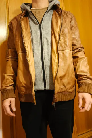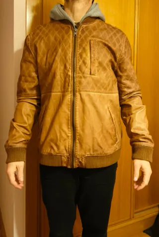 -Cazadora polipiel estilo bomber - Puños y bajo elásticos -Efecto sudadera -Bershka talla XXL (pequeña equivalente L/XL) -El efecto sudadera y la capucha son totalmente desmontables. -UN ÚNICO USO y buen estado