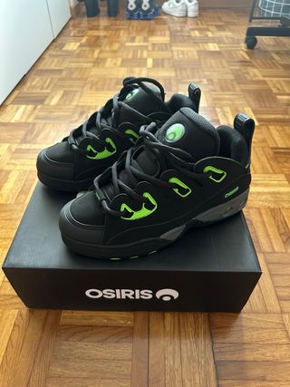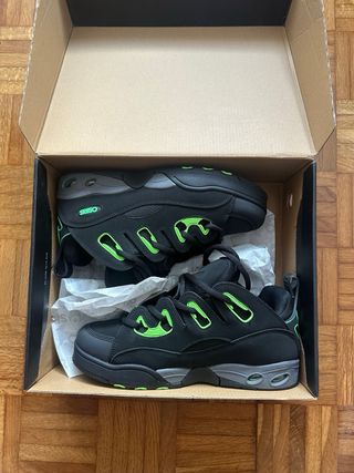 Zapatillas Osiris D3 E en color negro con detalles en verde. •Nuevas a estrenar •Talla 43