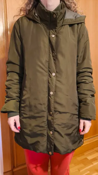 -Abrigo largo acolchado -Stradivarius talla L -Apertura abajo con 3 corchetes ****OJO! usado pudiendo tener pequeños detalles de uso,como por ejemplo en los corchetes,pero perfectamente aprovechable para diario****
