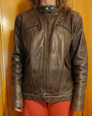 -Cazadora vintage piel -InExtenso Talla 48 (Equivalente L) -Color marron chocolate -Medidas aprox: Largo 63 cms Hombro a hombro 46cms Axila a axila 58cms
