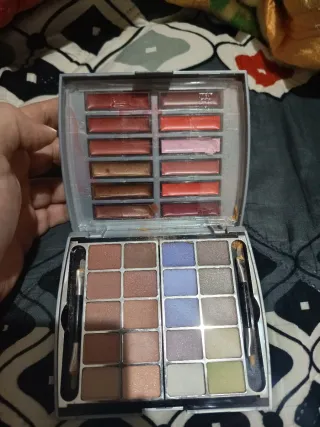 Paleta de maquillaje con varios tonos, ideal para probar diferentes looks. Los colores son variados y vibrantes. - Tonos dorados y rojizos. - Producto nuevo, sin usar.