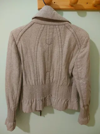 Chaqueta corta de color gris talla 38. Diseño con costuras marcadas. - Mangas largas. - Cuello alto. - Cremallera frontal.