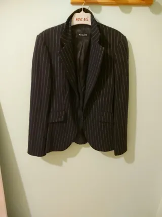 Chaqueta de Massimo Dutti con un diseño de rayas verticales. - Color azul marino con finas rayas grises. - Corte clásico y elegante.