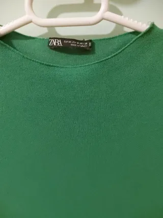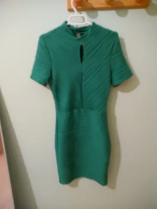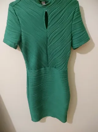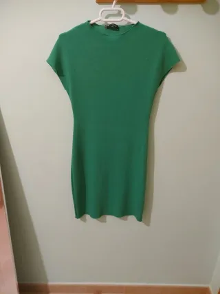 Vestido elástico de Zara en color verde. - Corte ajustado. - Manga corta.