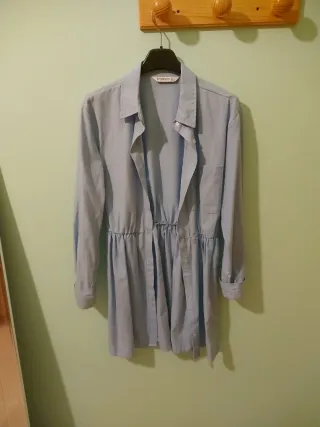 Camisa larga de Stradivarius en color azul. Presenta un diseño con cintura elástica y botones. - Manga larga. - Cuello camisero. - Bolsillo en el pecho.