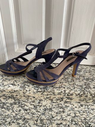 Elegantes zapatos de tacón de la marca Zara. - Diseño abierto con tiras. - Cierre de hebilla. - Tacón alto. Muy comodos