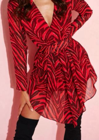 Precioso vestido de la marca Fetiche Suances, talla XS. Es de color rojo y dorado con estampado de cebra. Tiene un corte favorecedor y un cinturón. Ideal para ocasiones especiales. - Diseño de cebra - Cinturón incluido - Corte favorecedor
