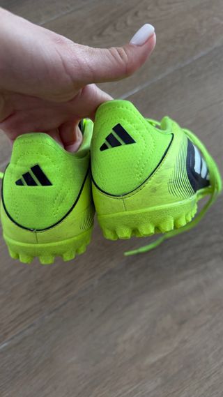 Botas de fútbol Adidas Copa en color negro y verde lima. Diseñadas para césped artificial. - Detalle de las tres rayas blancas. - Cordones de color verde lima. - Suela con tacos para césped artificial.