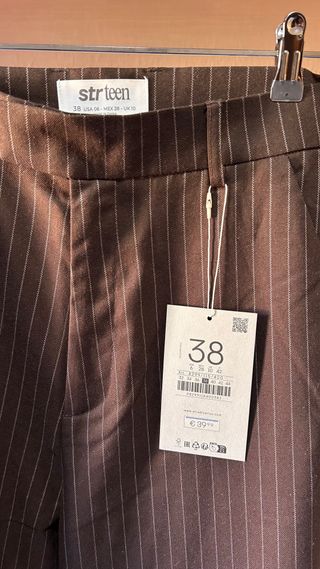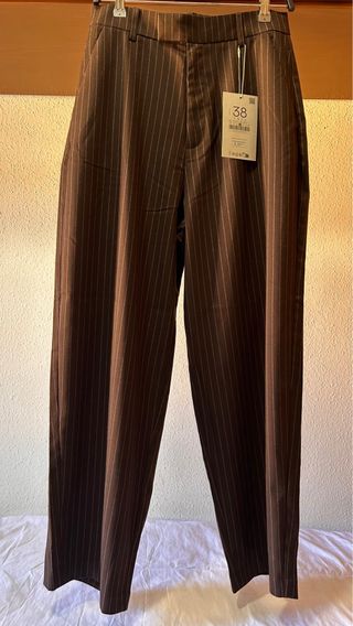 Pantalón de vestir de Stradivarius con diseño de rayas verticales. - Color marrón - Talla M (38) - Corte recto #strteen #stradivarius