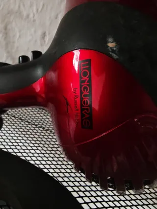 Secador de pelo con tecnología iónica, ideal para el cuidado del cabello. Su diseño combina el color rojo brillante con detalles en negro. - Incluye accesorio concentrador. - Mango ergonómico para un mejor agarre.
