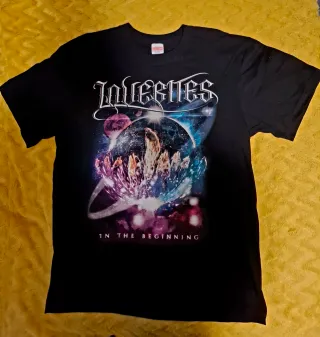 Camiseta oficial de LOVEBITES con un diseño espacial. - Talla L. - Color negro. - Diseño frontal con temática espacial y el logo de la banda. - In The Beginning en la parte inferior del diseño.